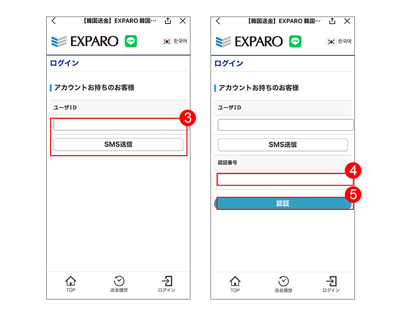 - 4SMSに送信された6桁の認証番号を入力してください