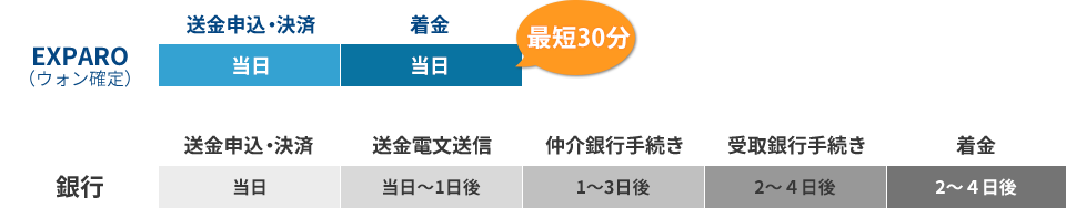 多くの金融機関の韓国送金サービスは、送金手数料以外に中継銀行手数料など各種コストが加算され、 最終的にかかる費用の高いサービスです。 また、送金依頼時に、いつ・いくら着金するのか、わからないなど不便で不明確な面もあります。