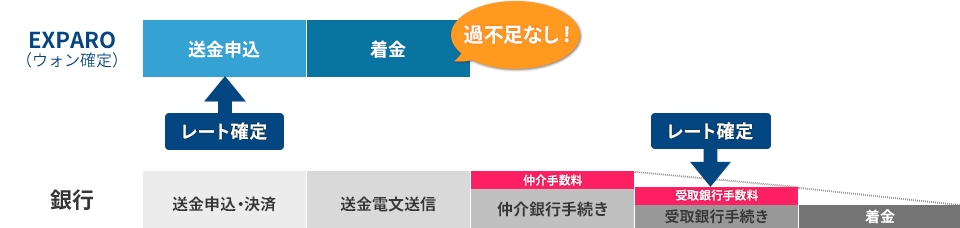 申込時に為替レートを確定するため、送金申込時にご希望のウォン送金額を過不足なく送金することができます。