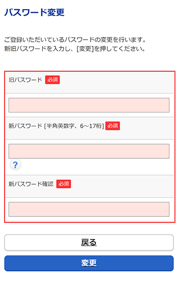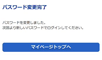 マイページ>パスワード変更画面から旧パスワードに自動で発行されたパスワードを入力し、新しいパスワード欄にお客様任意のパスワードを入力します。