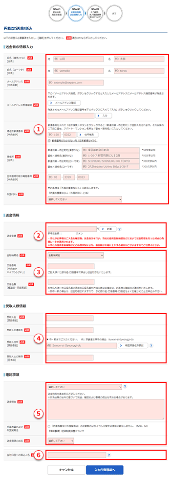 Step2お客様情報および円指定送金申込内容のご入力