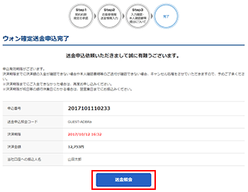 Step4決済金額のお支払い(送金申込完了)
