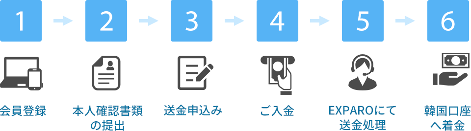 エクスパロオペレーターが、お客様の送金申込に応じたご入金を確認し、問題がなければ、速やかに送金処理を行います。
