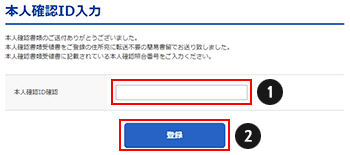 ①준비하신「본인확인서류 수령서」에 기재되어있는 본인확인ID를 입력, 등록 버튼을 눌러주시기 바랍니다.