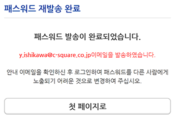 [패스워드 재발행에 관해] 이메일을 확인하시고, 기재된 패스워드를 이용해서 로그인하세요.