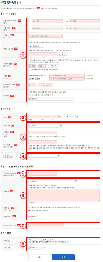 비회원 원화 확정 송금신청 폼에 송금액, 송금처정보등 송금에 필요항목을 입력하시고 신청해 주시기 바랍니다. 정상적으로 송금신청이 완료되면, 고객님이 등록하신 메일 주소로 확인 메일이 자동 송신됩니다. 송신된 메일은 반드시 확인 부탁 드립니다.