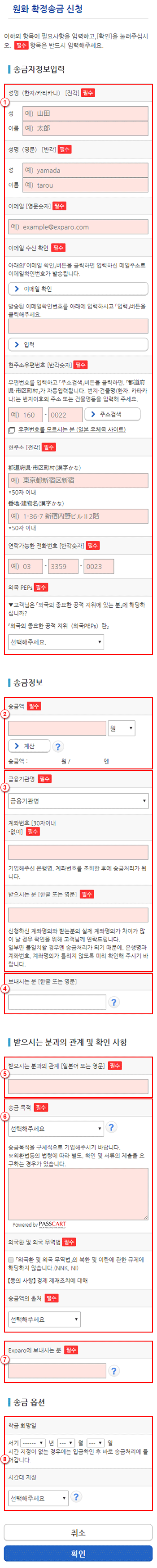 원화 확정 송금신청폼 작성 방법 (비회원용)