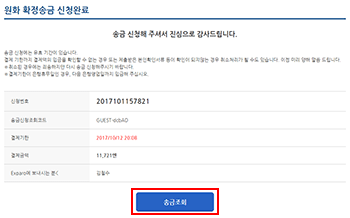 또는, 비회원 송금신청 확인 페이지에서 확인이 가능합니다.