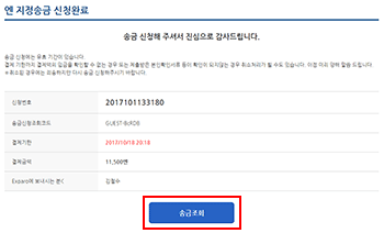 등록하신 메일 주소로「송금신청 완료 메일」이 자동송신 되오니, 내용을 확인해 주시기 바랍니다.