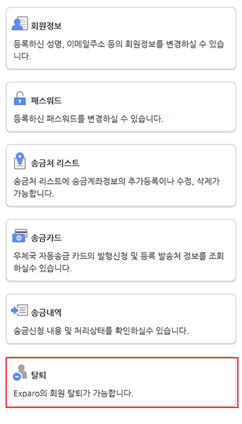 EXPARO회원 탈퇴 방법에 대한 안내입니다.