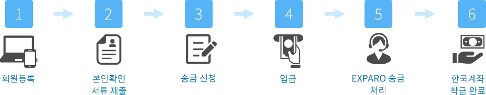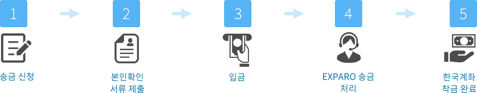 EXPARO 스태프가 고객님의 송금 신청에 따른 입금을 확인한 후 문제가 없으면 신속하게 송금 처리하겠습니다.